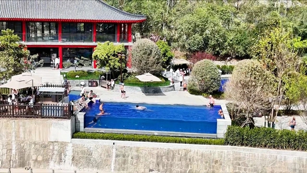 汤峪天潭温泉酒店的温泉水采自地下1000多米的岩层深处,打造了18个露天养生汤池,此外,山顶的露天泳池和跌水瀑布景观,让游客在泡汤之余可欣赏秦岭的层峦叠嶂,感受自然与人文的交融。