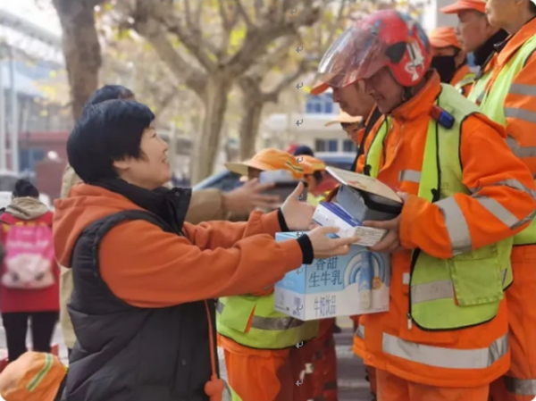枣园街道团结西路社区联合区直机关工委、西安慈善协会网约车学雷锋志愿者团队共同发起“情暖环卫工·冬日送温情”慈善捐赠行动,向坚守在城市美容一线的环卫工人们致以崇高敬意与贴心关怀。活动筹备阶段,志愿团队精心策划,根据环卫工人实际需求,采购了牛奶、加厚手套、防寒口罩、便携医疗包、抗菌香皂等十余类实用物资,每一件物品都饱含着对劳动者的敬重与牵挂。活动现场,志愿者们分工协作,将物资整齐摆放、分类装袋,以最便捷的方式完成分发。他们还与环卫工人围坐交谈,倾听他们的工作日常与心声,用真诚的互动拉近彼此距离。一句句暖心问候、一份份爱心礼包,不仅承载着对环卫工人的深切感谢与支持,更为环卫工人驱散了寒意,让“奉献、友爱、互助、进步”的志愿精神绽放出璀璨光芒。