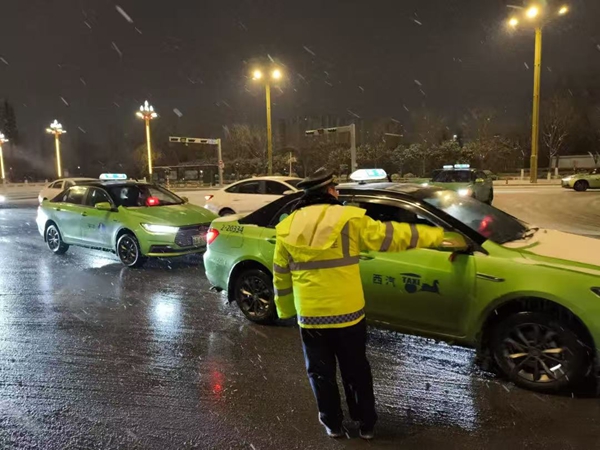 为避免雨雪天气引发站区周边交通拥堵,北客站广场管理中心联合交警部门在北客站周边主干道、进出站口设置交通引导岗,安排专人指挥车辆通行,疏导接送旅客车辆有序停放、即停即走,缓解区域交通压力。同时,对停车场出入口、人行横道等关键点位进行交通管控,增设临时引导标识,提醒驾驶员减速慢行。针对网约车、出租车停靠区域,优化停靠流程、划分专属通道,避免车辆扎堆和拥堵,确保站区内外交通循环顺畅,为旅客出行营造安全有序的交通环境。