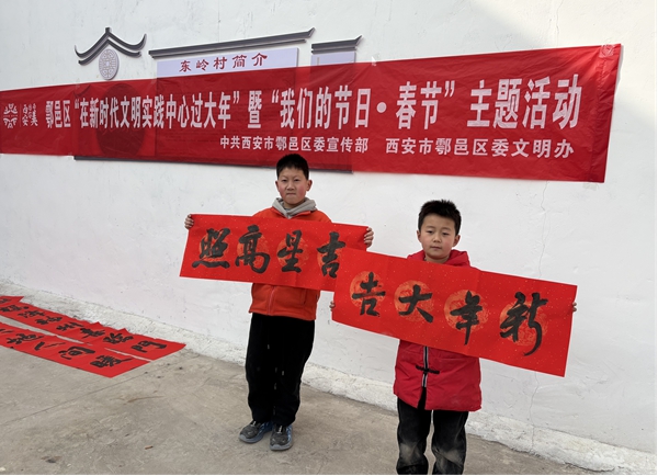 书法老师们身旁围满了热情的村民。一幅幅手写春联不仅带着新春的吉祥寓意,更融入了柳泉独有的诗意。现场群众一边等待一边念诵联句,小朋友也踮脚张望,浓浓的年味伴着淡淡墨香,弥漫在冬日暖阳里。