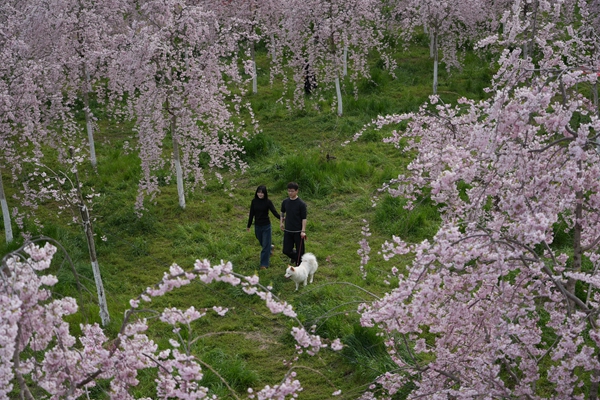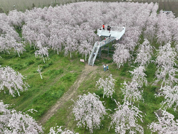 走进丁村樱花园,千万枝条垂落,粉白花海如瀑,仿佛置身于绚丽的春日画卷。园区致力于打造一个集赏花、休闲、体验于一体的春日度假目的地。通过精心规划,园区从2月底的梅花季延续到4月上旬的樱花季,努力延长花期效应,让“春日经济”的热度持续更久。目前,垂枝樱花进入盛花期,最佳观赏期将持续至4月上旬,邂逅一场浪漫的春日花事。
