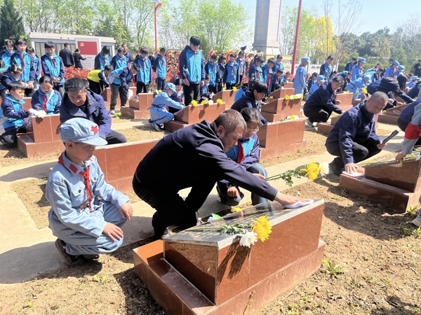 仪式最后,全体人员缓步瞻仰烈士纪念碑,认真擦拭墓碑、敬献小菊花,用质朴行动告慰先烈英灵,铭记那段烽火岁月里的牺牲与奉献,将课堂上感悟的革命精神,转化为缅怀先烈、立志前行的实际行动。